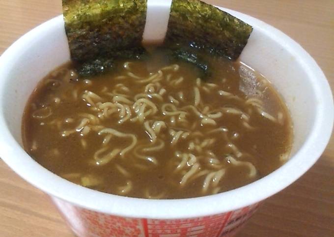娘がカップラーメンにレトルトカレーをかけて、麵を食べ終えたらご飯を入れて食べる計画中です。